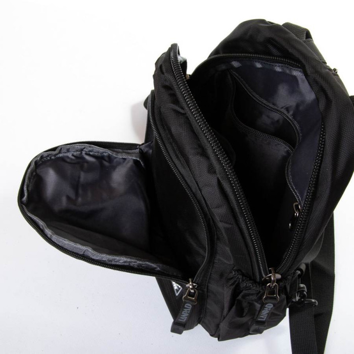 Чоловіча сумка Lanpad. Одне основне відділення закривається на блискавку. Усередині відділення є кишеня на блискавці та відкрита кишеня. На фасаді та зворотному боці знаходяться місткі кишені на блискавці. На бокових сторонах сумки є відкриті невеликі кишені.