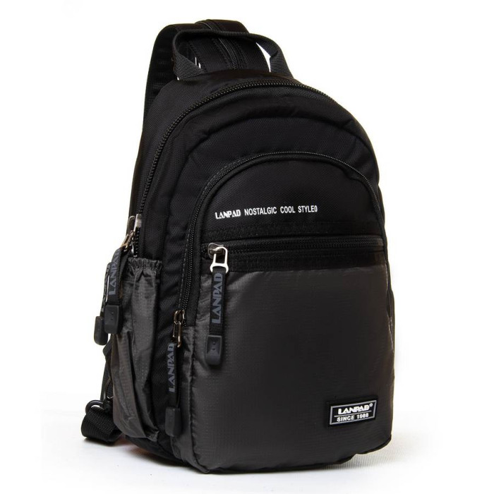 Чоловіча сумка Lanpad. Одне основне відділення закривається на блискавку. Усередині відділення є кишеня на блискавці та відкрита кишеня. На фасаді та зворотному боці знаходяться місткі кишені на блискавці. На бокових сторонах сумки є відкриті невеликі кишені.