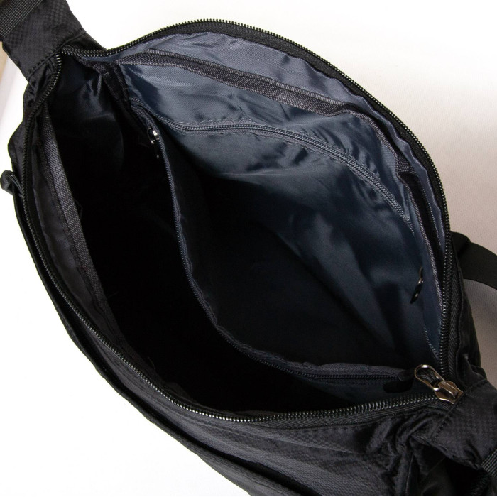 Чоловіча сумка на плече Lanpad. Закривається на блискавку. Усередині знаходиться подвійне відділення, розділене кишенею-перегородкою на блискавці, кишеню на блискавці та відкриту подвійну кишеню. На фасаді та зворотному боці знаходяться місткі кишені на блискавці. На торцях сумки також розташовані відкриті кишені. Регульований плечовий ремінь шириною 4см.
