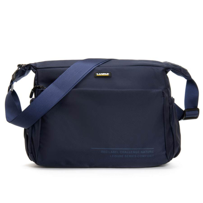 Чоловіча сумка на плече Lanpad. Закривається на блискавку. Усередині знаходиться подвійне відділення, розділене кишенею-перегородкою на блискавці, кишеню на блискавці та відкриту подвійну кишеню. На фасаді та зворотному боці знаходяться місткі кишені на блискавці. На торцях сумки також розташовані відкриті кишені. Регульований плечовий ремінь шириною 4см.