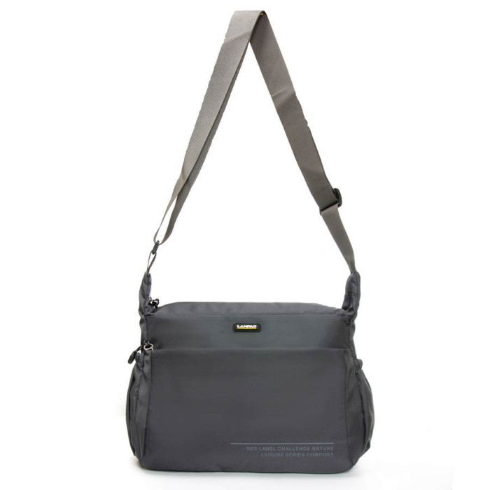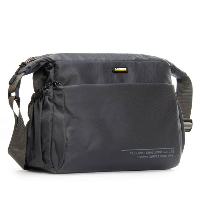 Чоловіча сумка на плече Lanpad. Закривається на блискавку. Усередині знаходиться подвійне відділення, розділене кишенею-перегородкою на блискавці, кишеню на блискавці та відкриту подвійну кишеню. На фасаді та зворотному боці знаходяться місткі кишені на блискавці. На торцях сумки також розташовані відкриті кишені. Регульований плечовий ремінь шириною 4см.