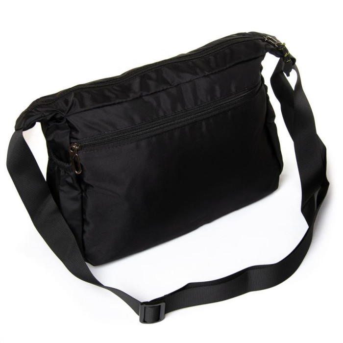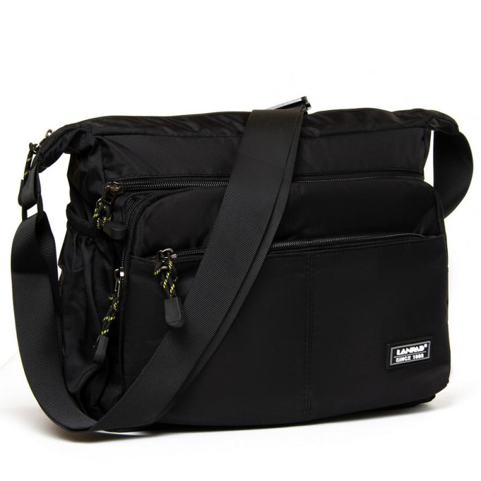 Сумка чоловіча Lanpad. Закривається на блискавку. Усередині знаходиться подвійне відділення, розділене кишенею-перегородкою на блискавці, кишеню на блискавці та відкриту подвійну кишеню. На фасаді та зворотному боці знаходяться місткі кишені на блискавці. На торцях сумки також розташовані відкриті кишені. Регульований плечовий ремінь шириною 4см.