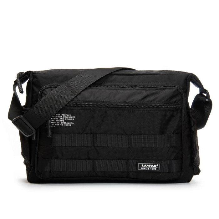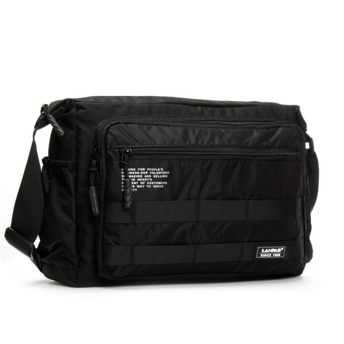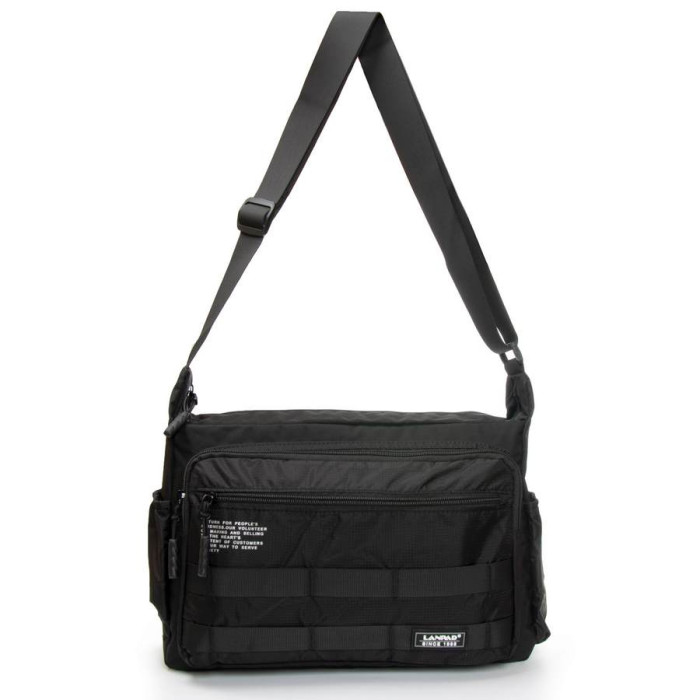 Чоловіча сумка Lanpad. Закривається на блискавку. Всередині знаходиться подвійне відділення, велика бічна кишеня на блискавці і відкрита подвійна кишеня. На фасаді і зворотному боці знаходяться місткі кишені на блискавці. На торцях сумки також розташовані відкриті кишені.