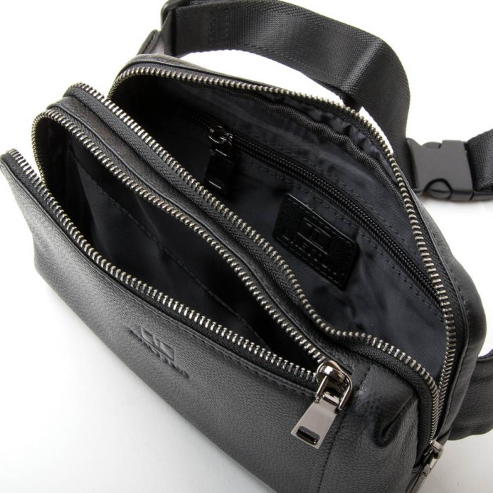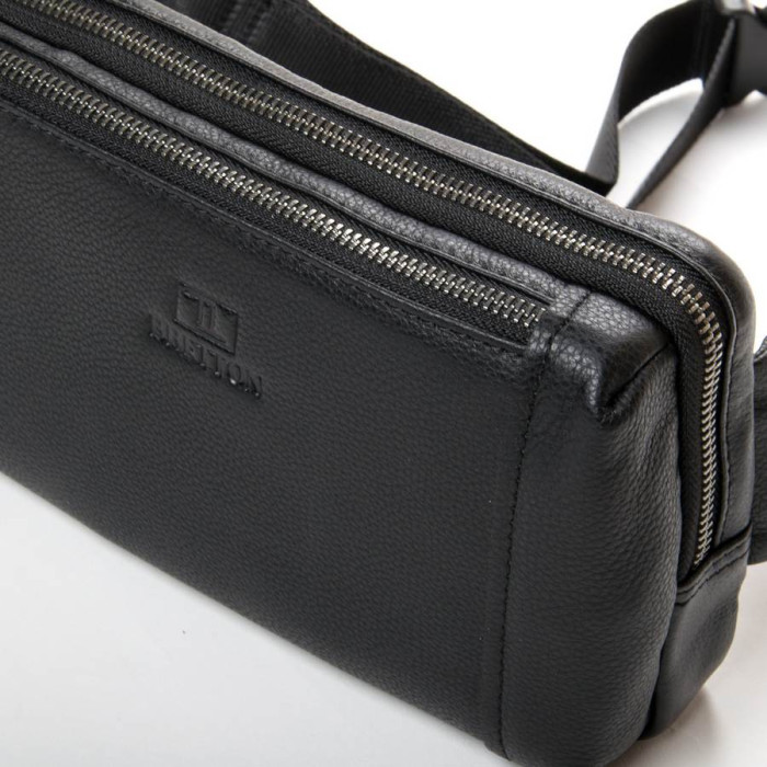 Чоловіча шкіряна сумка Bretton. Можна носити на поясі або через плече. Два відділення, закриваються на блискавку. Усередині відділень є одна кишеня на блискавці і дві відкриті кишені. Регульований ремінь, шириною 3см.