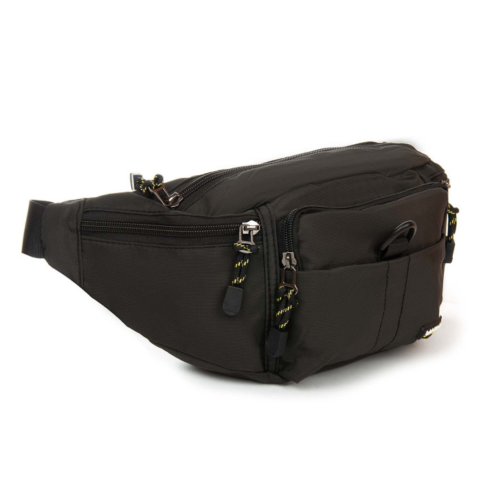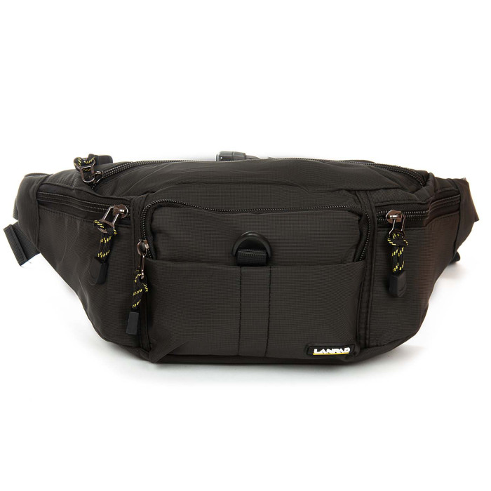 Чоловіча сумка пояс/плечо Lanpad. Одне основне відділення закривається на блискавку. Усередині є бічна кишеня на блискавці. На фасаді та на звороті знаходяться місткі кишені на блискавці.