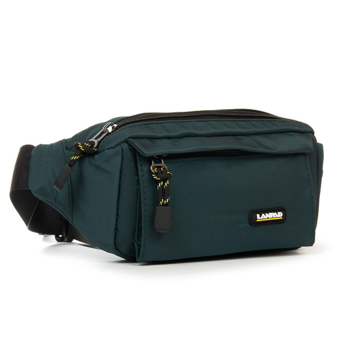 Чоловіча сумка пояс/плечо Lanpad. Одне відділення закривається на блискавку. Усередині є бічна кишеня на блискавці. На фасаді та на звороті знаходяться місткі кишені на блискавці.