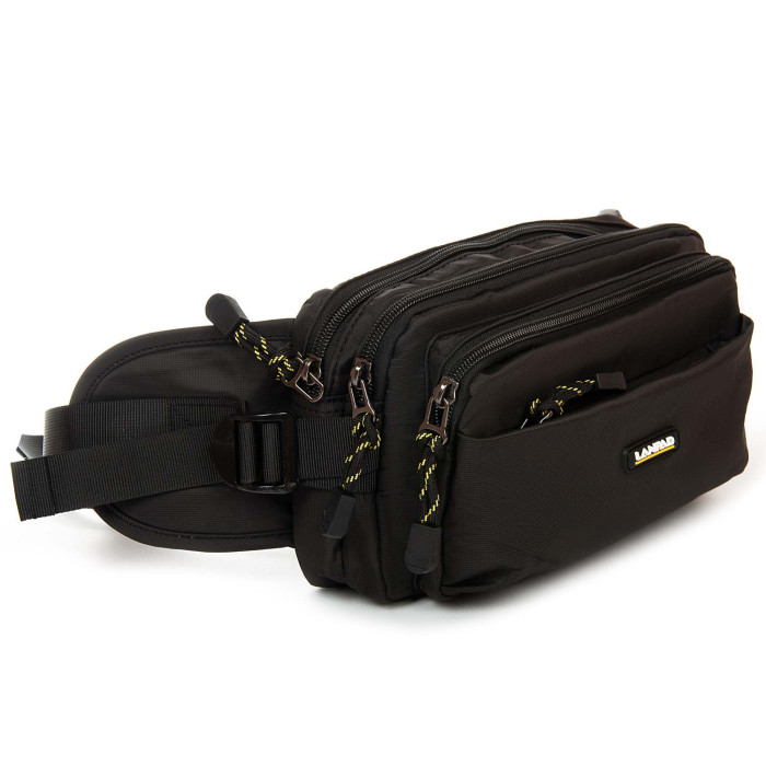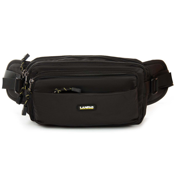 Чоловіча сумка пояс/плечо Lanpad. Два основних відділення, що закриваються на блискавці. Усередині є кишеня на блискавці та відкрита кишеня. На фасаді та на звороті знаходяться місткі кишені на блискавці.