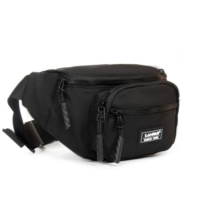 Чоловіча сумка на пояс/плече Lanpad. Одне відділення, закривається на блискавку. Всередині є бічна кишеня на блискавці. На фасаді і на зворотному боці сумки знаходяться місткі кишені на блискавці.