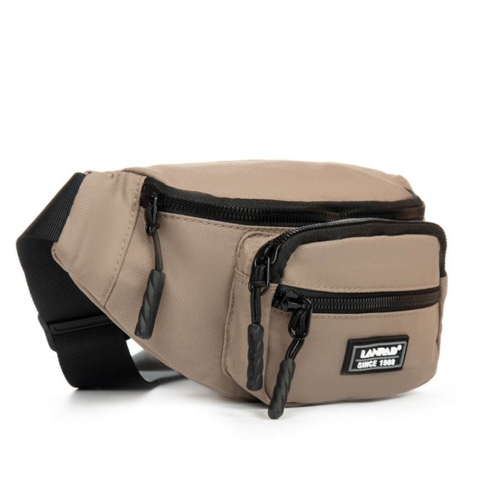 Чоловіча сумка на пояс/плече Lanpad. Одне відділення, закривається на блискавку. Всередині є бічна кишеня на блискавці. На фасаді і на зворотному боці сумки знаходяться місткі кишені на блискавці.
