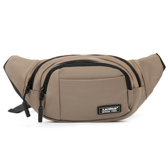 Чоловіча сумка на пояс/плече Lanpad. Два відділення, закриваються на блискавку. Усередині основного відділення є бічна кишеня на блискавці. На фасаді знаходиться кишеня на застібці-липучці, а на зворотному боці сумки - на блискавці.