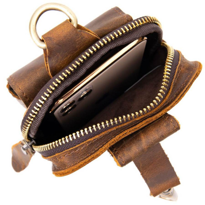 Сумка з натуральної матової шкіри. Модель має дуже зручний функціонал. Носити ви можете барсетку на поясі за допомогою петельки або підчепивши її за допомогою карабіна. Виріб має компактний розмір і підійде замість клатча для найнеобхідніших речей. Ідеальний варіант для цінних речей в дорогу. Така сумка завжди буде під рукою. Виробництво - фабричний Китай. У поєднанні з міцною фурнітурою виріб прослужить вам далеко не один рік. Сумка стане прекрасним подарунком для будь-якого чоловіка.