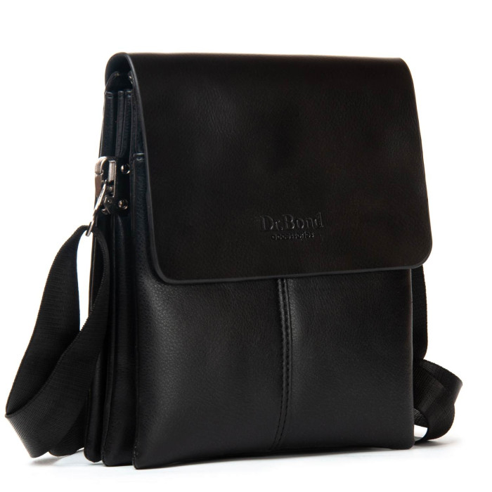 Чоловіча сумка - планшет Dr.Bond. Клапан виготовлений з натуральної щільної шкіри, фіксується на два прихованих магніти. Під клапаном знаходяться три відділення, які додатково закриваються на загальну блискавку. Відділення розділені кишенями-перегородкою. На фасаді під клапаном розташована велика відкрита кишеня. На зворотному боці сумки є кишеня на блискавці.