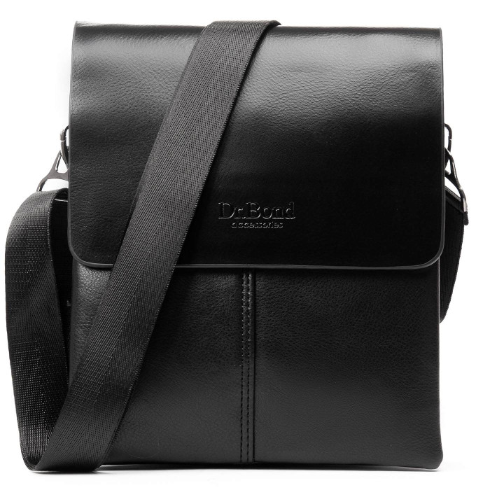 Чоловіча сумка - планшет Dr.Bond. Клапан виготовлений з натуральної щільної шкіри, фіксується на два прихованих магніти. Під клапаном знаходяться три відділення, які додатково закриваються на загальну блискавку. Відділення розділені кишенями-перегородкою. На фасаді під клапаном розташована велика відкрита кишеня. На зворотному боці сумки є кишеня на блискавці.