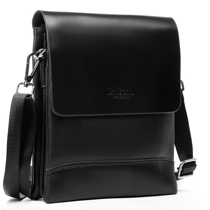 Чоловіча сумка - планшет Dr.Bond. Клапан виготовлений з натуральної щільної шкіри, фіксується на два прихованих магніти. Під клапаном знаходяться два відділення, які додатково закриваються на блискавці. Відділення розділені кишенею-перегородкою. На фасаді під клапаном розташована велика відкрита кишеня. На зворотному боці сумки є кишеня на блискавці.