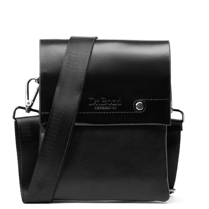 Чоловіча сумка - планшет Dr.Bond. Клапан виготовлений з натуральної щільної шкіри, фіксується на два прихованих магніти. Під клапаном знаходяться два відділення, які додатково закриваються на блискавці. Відділення розділені кишенею-перегородкою. На фасаді під клапаном розташована велика відкрита кишеня. На зворотному боці сумки є кишеня на блискавці.
