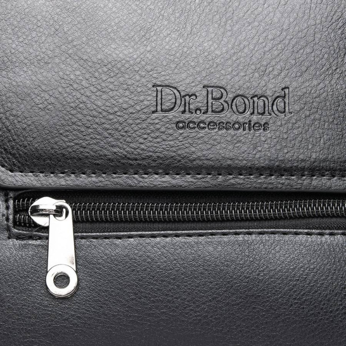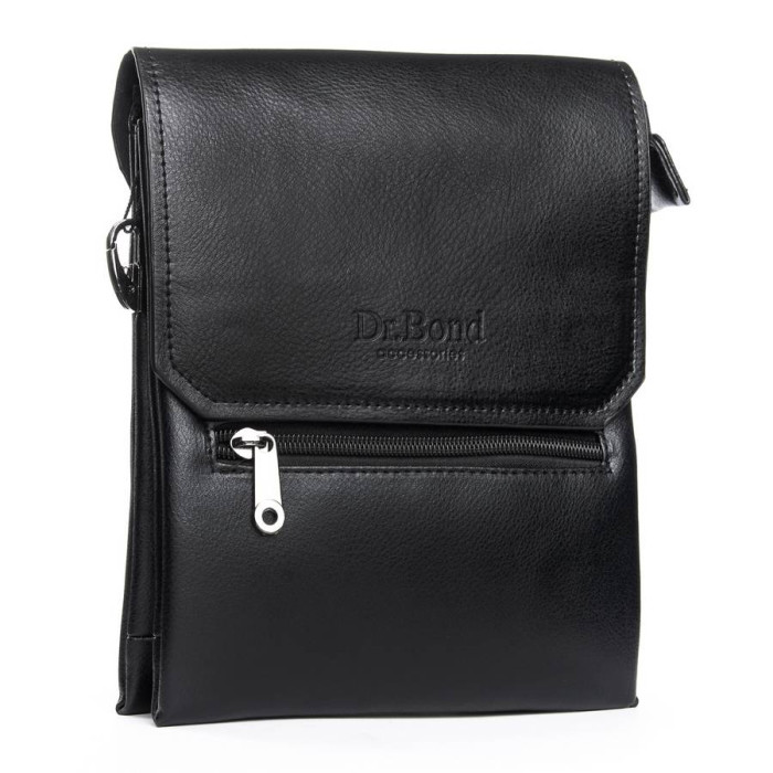 Чоловіча сумка-планшет Dr.Bond. Клапан з натуральної шкіри. Під клапаном додатково закривається на блискавку. Подвійне відділення, розділене кишенею-перегородкою, бічна кишеня на блискавки і відкриту кишеню. На фасаді розміщена кишеня на блискавці. На зворотному боці є кишеня на блискавці. У комплекті регульований плечовий ремінь і знімна ручка. Розмір (см) 19*23*5
