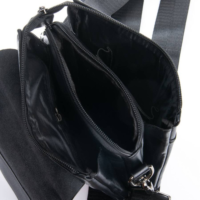 Чоловіча сумка-планшет Dr.Bond. Клапан виготовлений із натуральної гладкої шкіри. Під клапаном додатково закривається на блискавку. Усередині розміщені три відділення, бічна кишеня на блискавці та відкрита кишеня для смартфона. На фасаді знаходиться відкрита кишеня. На зворотному боці сумки є кишеня на блискавці. Регульований плечовий ремінь і знімна ручка. Розмір (см.) 17*20*5