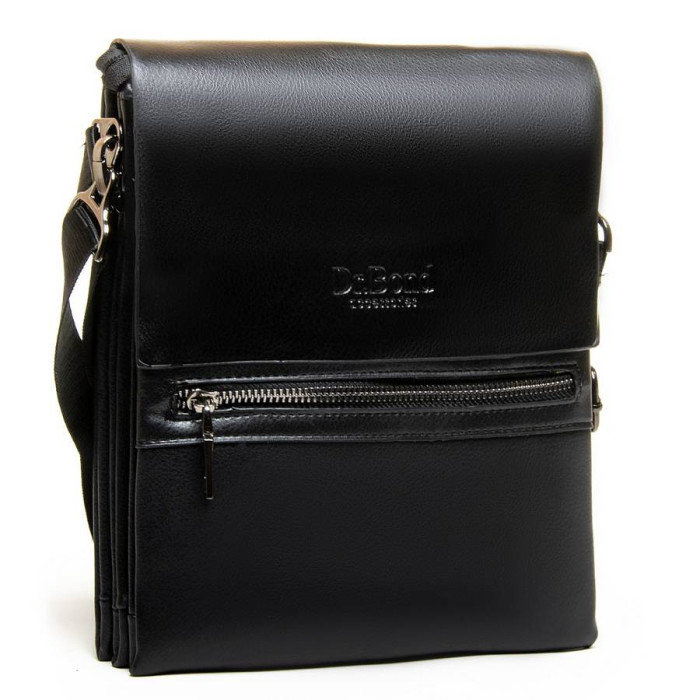 Чоловіча сумка-планшет Dr.Bond. Клапан виготовлений з натуральної гладкої шкіри. Під клапаном додатково закривається на блискавку. Усередині розміщено три відділення, бічна кишеня на блискавки і відкриту кишеню для смартфону. На фасаді знаходиться кишеня на блискавці. На зворотному боці сумки є кишеня на блискавці. Регульований плечовий ремінь і знімна ручка.