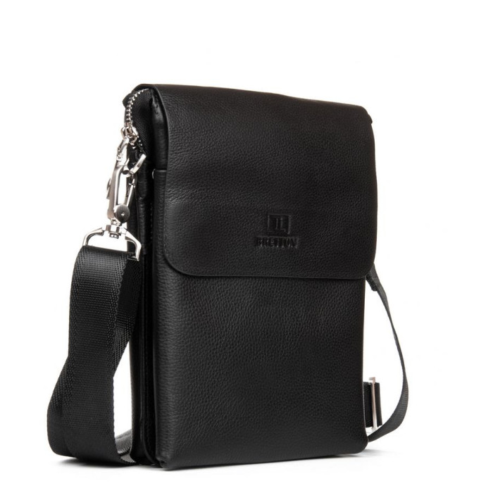 Чоловіча шкіряна сумка-планшет Bretton. Під клапаном знаходяться три відділення, які додатково закриваються загальною блискавкою. Усередині є бічна кишеня на блискавки і відкриту кишеню. На фасаді під клапаном є відкрита кишеня. На зворотному боці сумки знаходиться кишеня на блискавці.