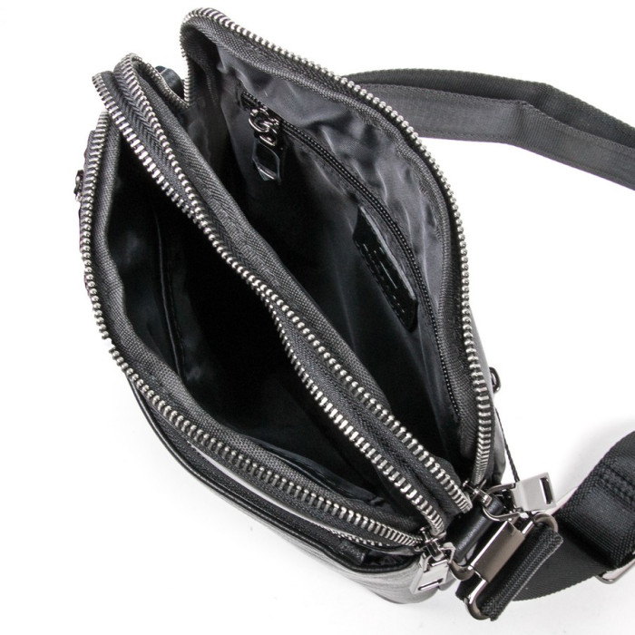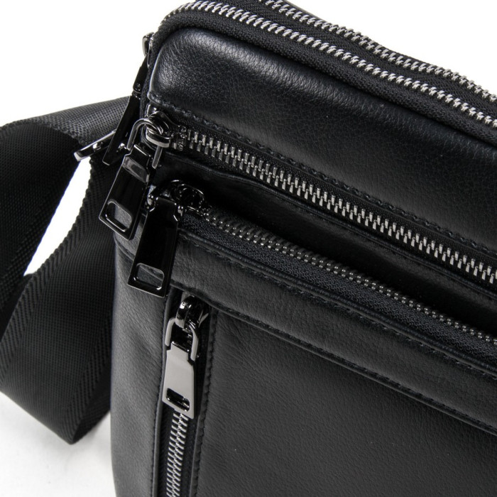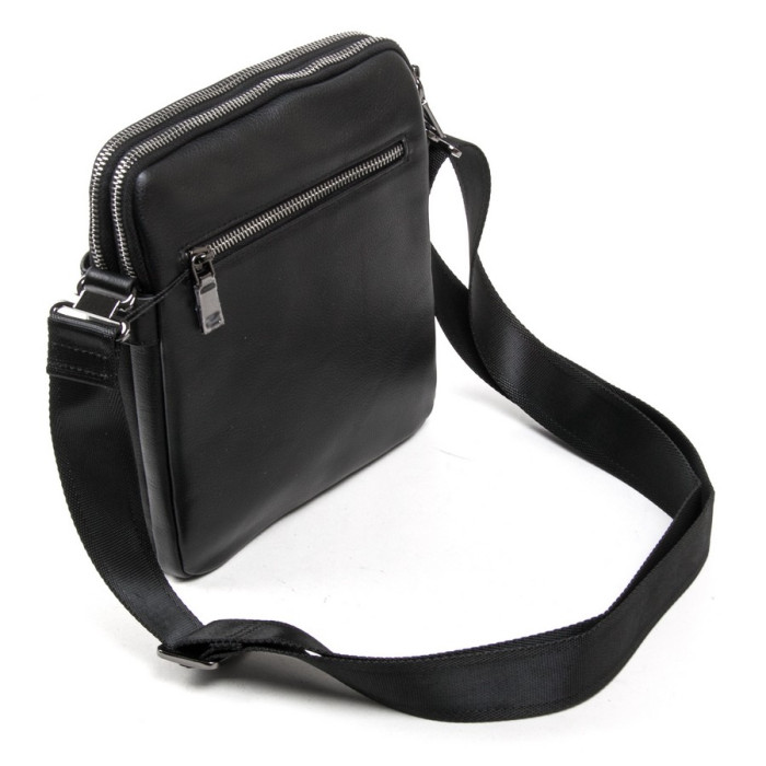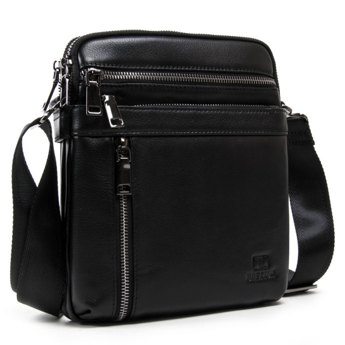 Чоловіча шкіряна сумка-планшет Bretton. Виготовлена з натуральної м'якої шкіри. Два відділення, в яких є відкрита кишеня і бічна кишеня на блискавці. На фасаді сумки є три кишені на блискавці. На зворотному боці розташована кишеня на блискавці. Регульований плечовий ремінь.
