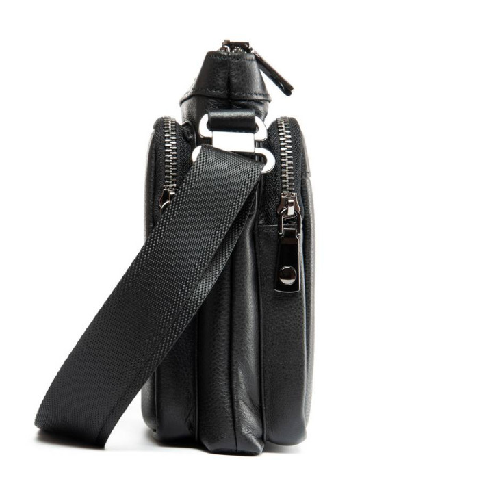 Виготовлена з м'якої натуральної шкіри. Одне відділення, закривається на блискавку. Усередині відділення є відкрита кишеня і бічна кишеня на блискавці. На фасаді і на зворотному боці сумки є місткі кишені на блискавці.