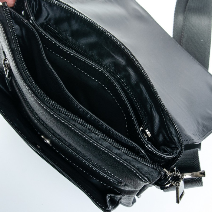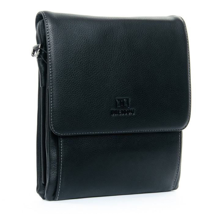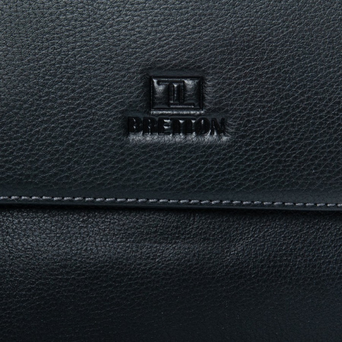 Чоловіча шкіряна сумка-планшет Bretton. Під клапаном додатково закривається на блискавку. Усередині знаходиться подвійне відділення, розділене кишенею-перегородкою, відкрита кишеня і бічна кишеня на блискавці. На фасаді сумки під клапаном є дві відкриті кишені і одна кишеня на блискавці. На зворотному боці розташована кишеня на блискавці. Регульований плечовий ремінь в комплекті.