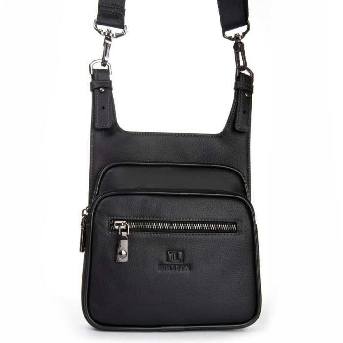 Чоловіча шкіряна сумка-планшет Bretton. Виготовлена із м'якої натуральної шкіри. Два відділення, що закриваються на блискавку. Всередині основного відділення є відкрита кишеня та бічна кишеня для смартфона. На фасаді розташована кишеня на блискавці. Регульований плечовий ремінь у комплекті.
