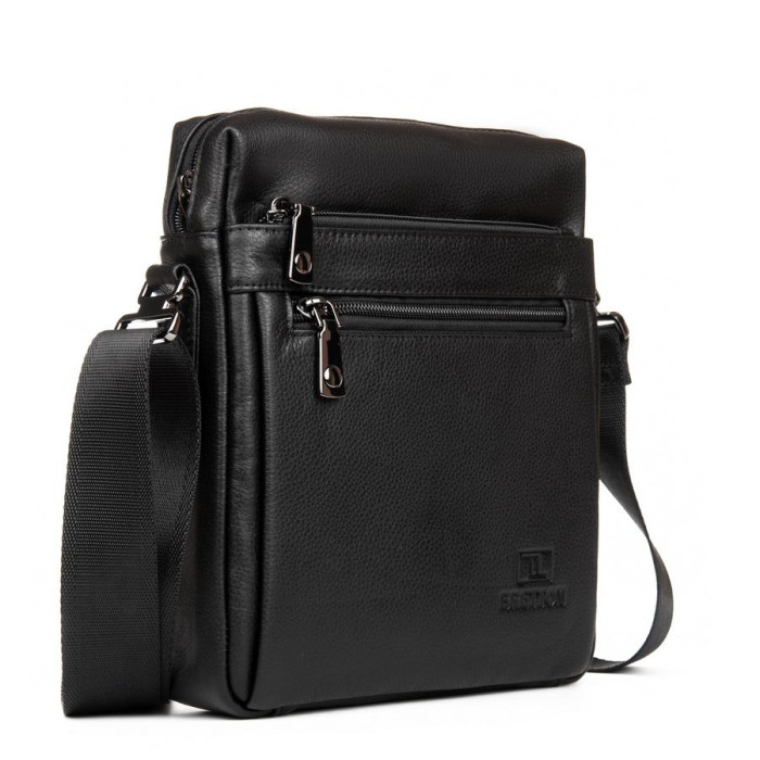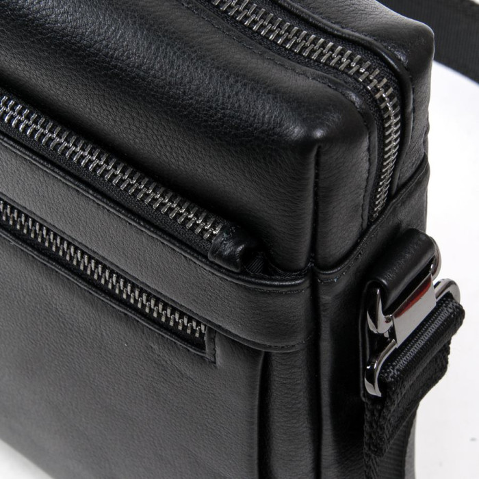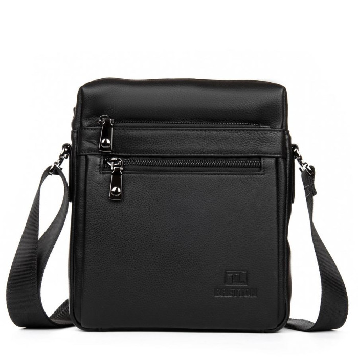 Чоловіча шкіряна сумка-планшет Bretton. Виготовлена з натуральної м'якої шкіри. Одне відділення, закривається на блискавку. Усередині є відкрита кишеня і бічна кишеня на блискавці. На фасаді сумки і на зворотному боці розташовані кишені на блискавці. Регульований плечовий ремінь.