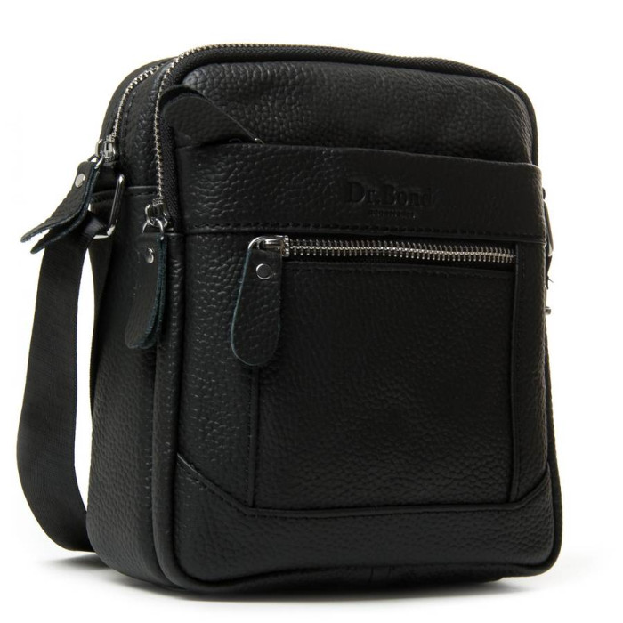 Шкіряна чоловіча сумка-планшет Dr.Bond. Два відділення, закривются на блискавку. Всередині є бокова кишеня на блискавці. На фасаді і зворотному боці розташовані кишені на блискавці. Плечовий ремінь регулюється по довжині.