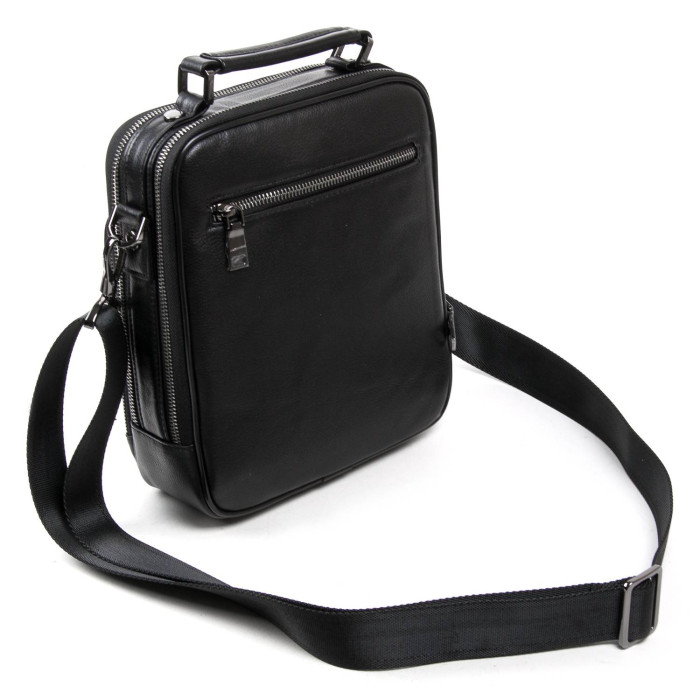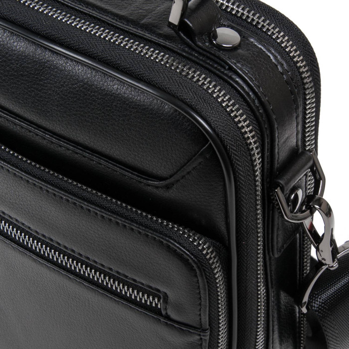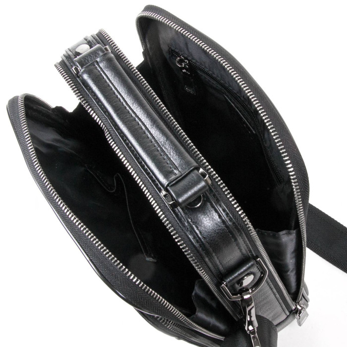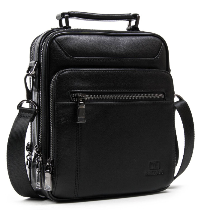 Чоловіча шкіряна каркасна сумка-планшет Bretton. Виготовлена з натуральної м'якої шкіри. Два відділення, закриваються на блискавку. Усередині є відкрита кишеня і бічна кишеня на блискавці. На фасаді сумки і на зворотному боці розташовані кишені на блискавці. Регульований плечовий ремінь в комплекті. Розмір (см.) 21*25*9