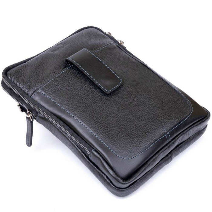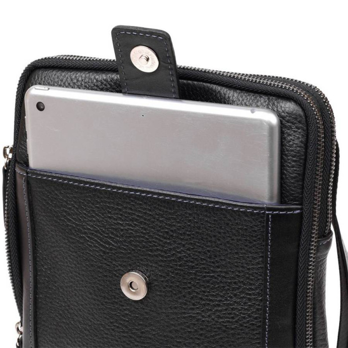 Практична сумка в зернистій шкірі "флотар" на два відділення. Модель в класичному чорному кольорі. Виробництво - Україна. Найвища якість виконання. Міцна фурнітура та якісні матеріали. Зерниста шкіра зовсім невибаглива в догляді. Довго служить і залишається в ідеальному вигляді. На виробах з зернистої шкіри менше видно подряпини і потертості. Чоловічий планшет - кращий варіант сумки на кожен день і для зустрічей. У дизайні моделі немає ніяких зайвих деталей при цьому сумка виглядає дуже модно і стильно. На лицьовій стороні моделі тиснення у вигляді логотипу бренду. Сумка доповнена вставками з гладкої шкіри з боків і хлястик на лицьовій стороні, що підкреслить її індивідуальний і продуманий дизайн, а вам в свою чергу додасть впевненості і солідності. Аксесуар доповнено текстильним незнімним ремінцем на плече. Шкіряна сумка - кращий подарунок для будь-якого чоловіка. Якщо ви хочете таку ж модель в корчневому кольорі - код для пошуку 11286, в вінтажній шкірі - 11285.