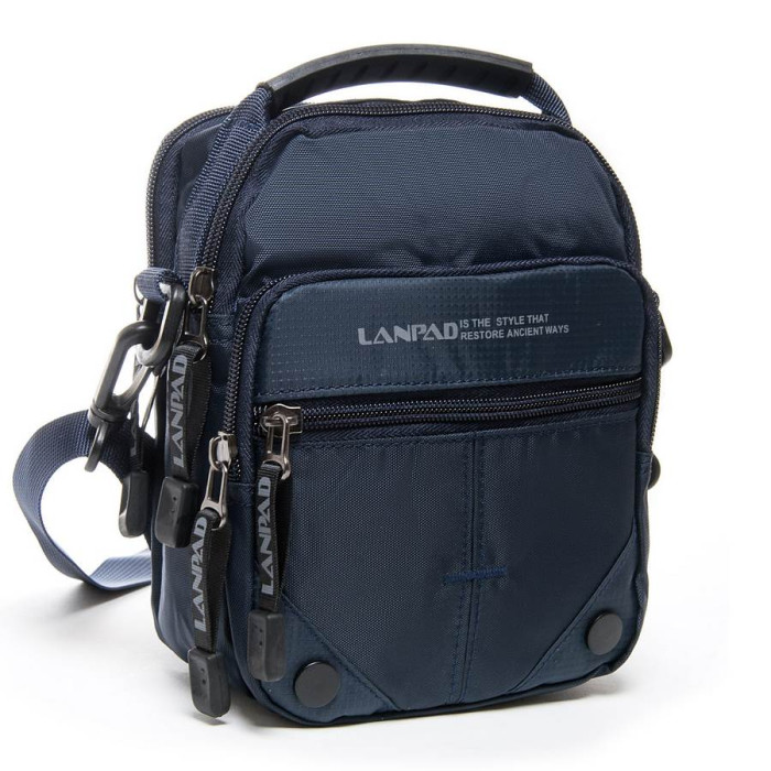 Чоловіча сумка Lanpad. Два відділення, закриваються на блискавку. Усередині відділень є кишеня на блискавці. На фасаді розташовані дві кишені на блискавці. Зовні сумки на зворотному боці є кріплення на пояс. В комплекті регульований плечовий ремінь, шириною 3см.