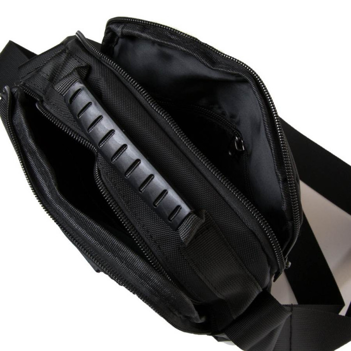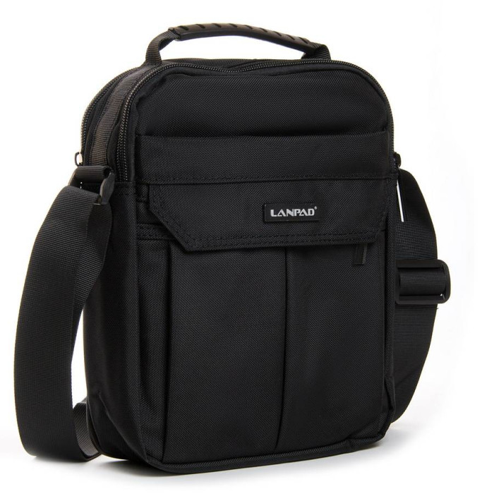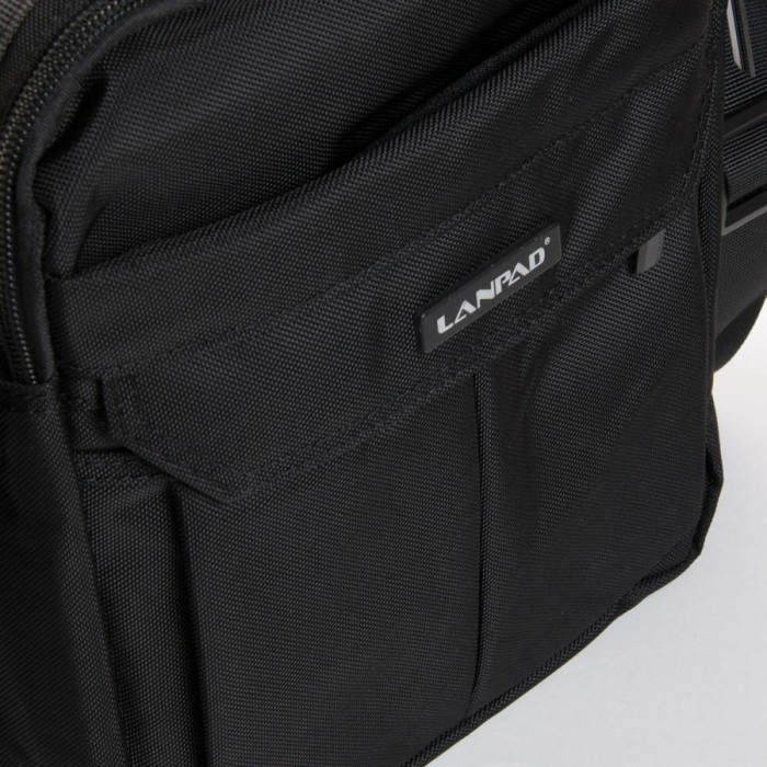 Чоловічі сумки Lanpad. Виготовлена із щільного матеріалу. Два відділення, що закриваються на блискавку. Усередині відділень розташована кишеня на блискавці та відкрита кишеня. На фасаді та на звороті знаходяться кишені на блискавці. Регульований плечовий ремінь, 4см.