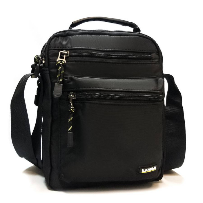 Чоловіча сумка Lanpad. Два відділення, що закриваються на блискавку. Усередині є кишеня на блискавці та відкрита кишеня. На фасаді сумки знаходяться 2 великі кишені на блискавці і на звороті є одна кишеня на блискавці. Регульований плечовий ремінь шириною 4см.