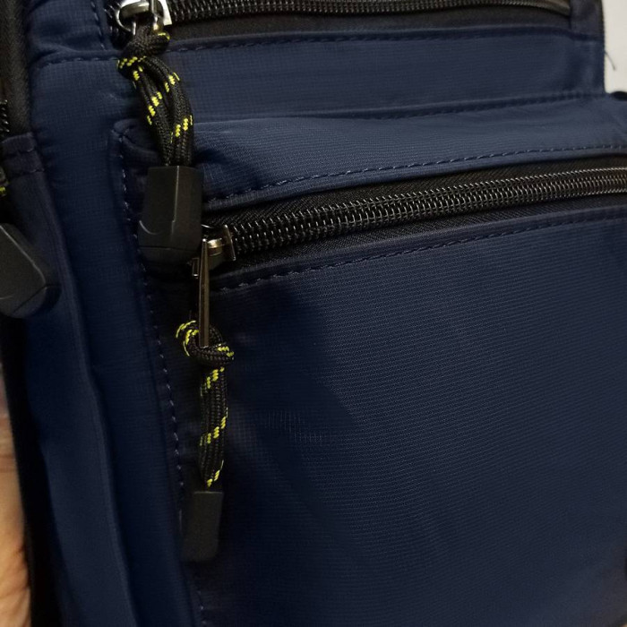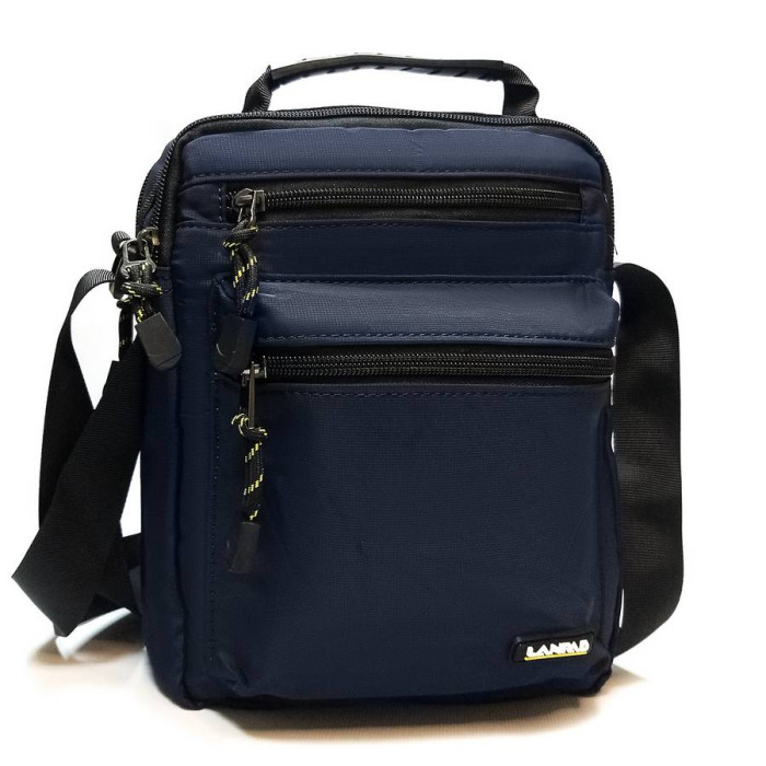 Чоловіча сумка Lanpad. Два відділення, що закриваються на блискавку. Усередині є кишеня на блискавці та відкрита кишеня. На фасаді сумки знаходяться 2 великі кишені на блискавці і на звороті є одна кишеня на блискавці. Регульований плечовий ремінь шириною 4см.