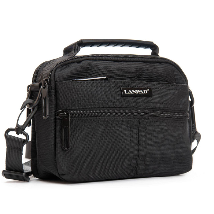 Чоловіча горизонтальна сумка крос-боді Lanpad. Два відділення, закриваються на блискавці. Усередині відділень є бічна кишеня на блискавці та відкрита кишеня. На фасаді розташовані 2 місткі кишені на блискавці. На зворотному боці є кріплення на пояс.