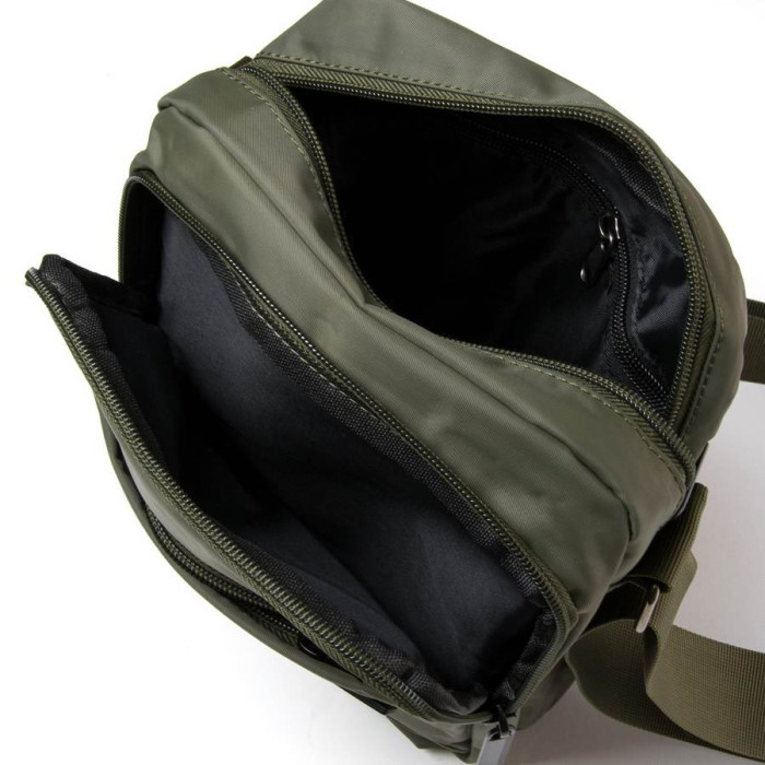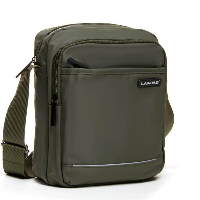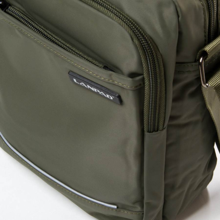 Сумка чоловіча Lanpad. Одне відділення закривається на блискавку. Усередині відділення розташована кишеня на блискавці. На фасаді та зворотному боці знаходяться великі кишені на блискавці. Регульований плечовий ремінь шириною 4см.