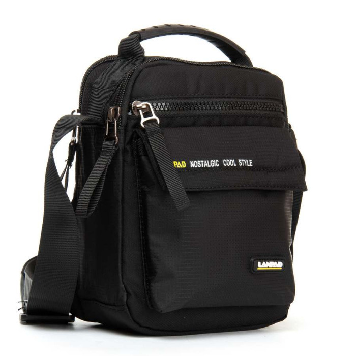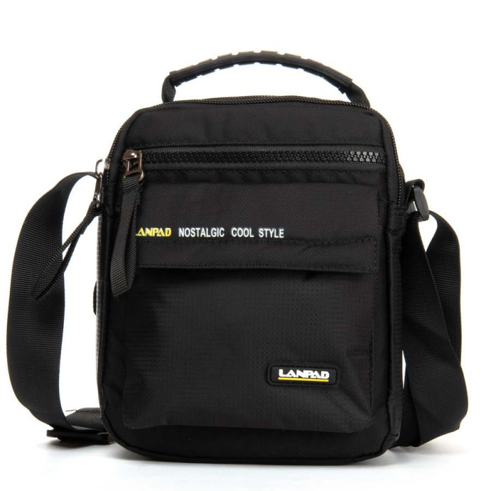 Сумка чоловіча Lanpad. Два відділення, що закриваються на блискавку. Усередині відділень є кишеня на блискавці та відкрита кишеня. На фасаді знаходиться кишеня на блискавці та кишеня під клапаном, а на звороті розташована одна кишеня на блискавці. Регульований плечовий ремінь шириною 3см.