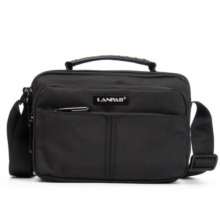 Чоловіча горизонтальна сумка крос-боді Lanpad. Два відділення, закриваються на блискавці. Усередині відділень є бічна кишеня на блискавці і відкрита кишеня. На фасаді розташовані 2 місткі кишені на блискавці, а на зворотному боці одна велика кишеня на блискавці.