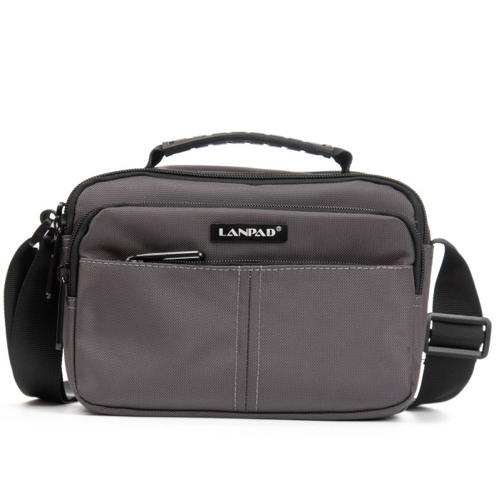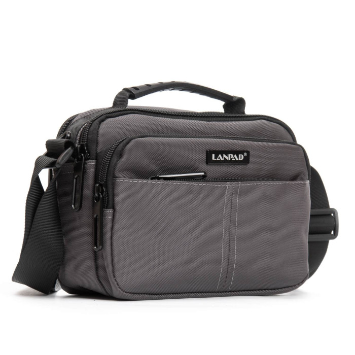 Чоловіча горизонтальна сумка крос-боді Lanpad. Два відділення, закриваються на блискавці. Усередині відділень є бічна кишеня на блискавці і відкрита кишеня. На фасаді розташовані 2 місткі кишені на блискавці, а на зворотному боці одна велика кишеня на блискавці.