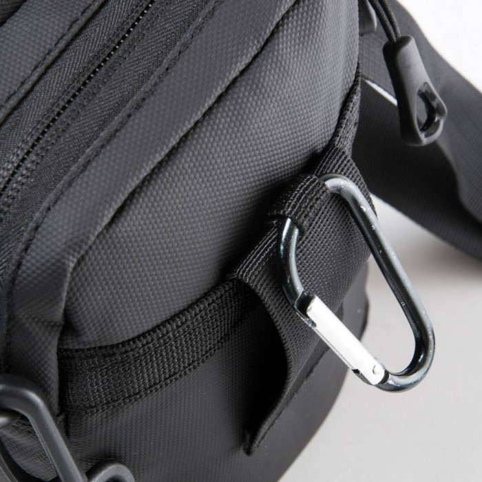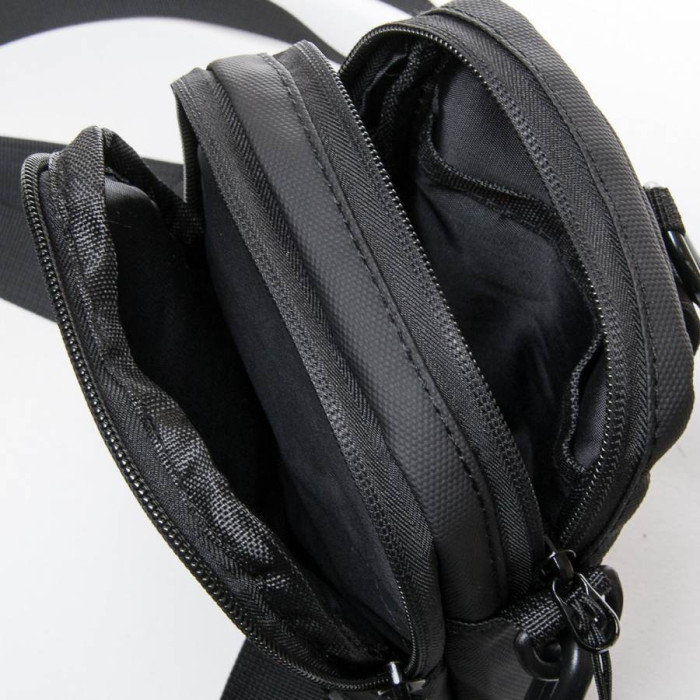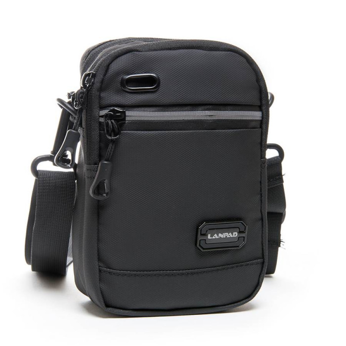 Чоловіча сумка Lanpad. Два відділення, що закриваються на блискавку. Усередині відділення є відкита кишеня. На фасаді розташована кишеня на блискавці. На звороті є кріплення для носіння сумки на поясі. Регульований плечовий ремінь у комплекті.