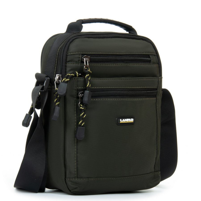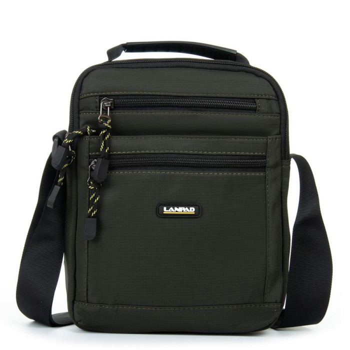 Чоловіча сумка планшет Lanpad. Два відділення, що закриваються на блискавку. Усередині є кишеня на блискавці. На фасаді сумки знаходяться 3 кишені на блискавці і на звороті є одна кишеня на блискавці. Регульований плечовий ремінь шириною 4см.