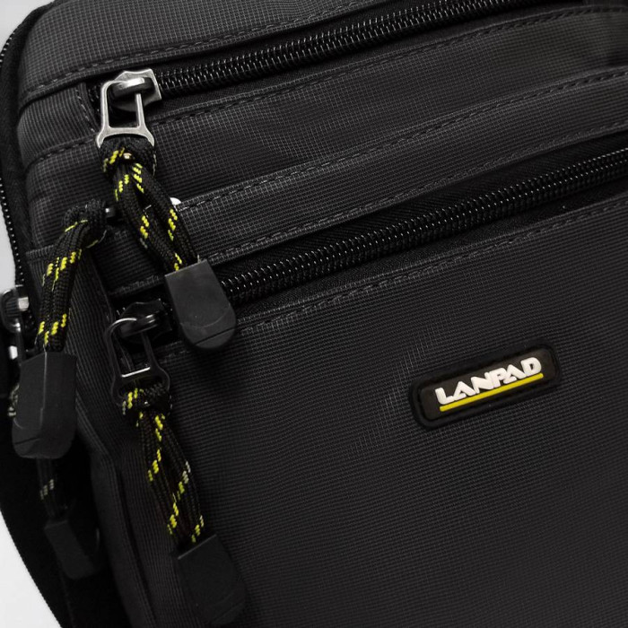 Чоловіча сумка планшет Lanpad. Два відділення, що закриваються на блискавку. Усередині є кишеня на блискавці. На фасаді сумки знаходяться 3 кишені на блискавці і на звороті є одна кишеня на блискавці. Регульований плечовий ремінь шириною 4см.