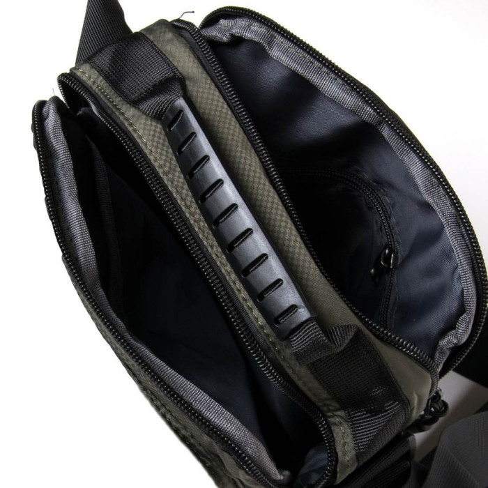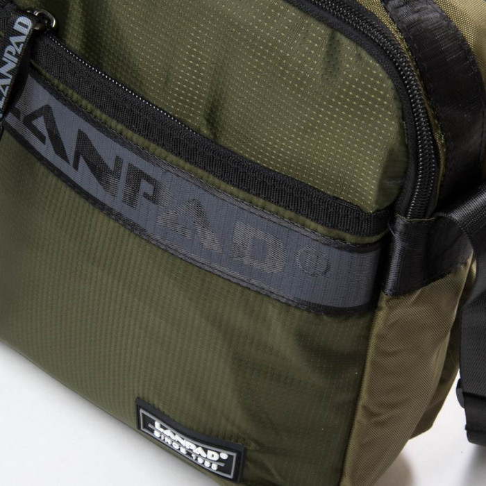 Сумка чоловіча Lanpad. Два відділення, що закриваються на блискавку. Усередині відділення розташована кишеня на блискавці та відкрита кишеня. На фасаді знаходиться велика кишеня на блискавці. На звороті є кишеня на блискавці. Регульований плечовий ремінь.