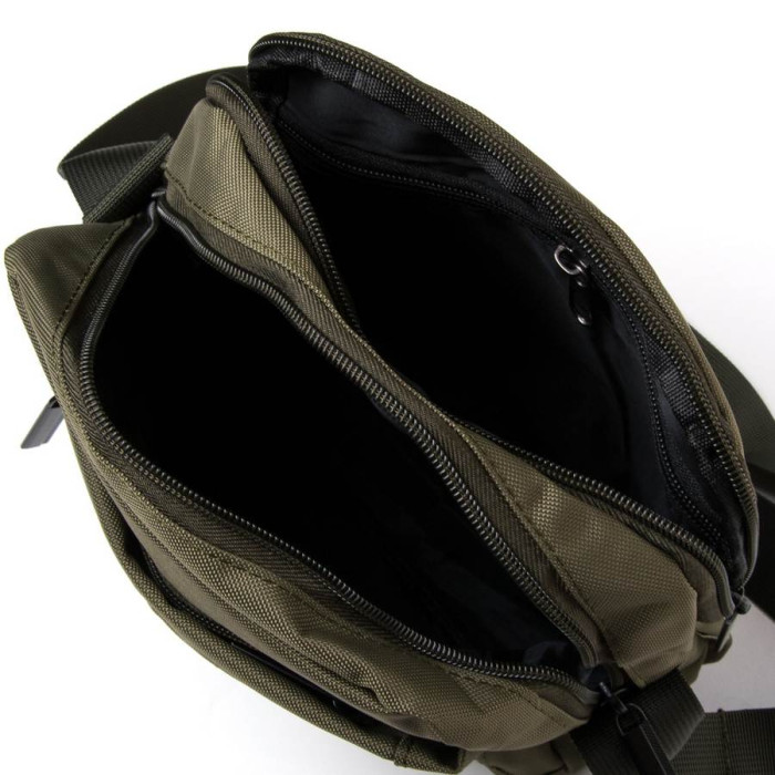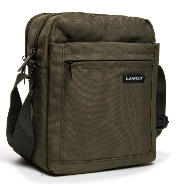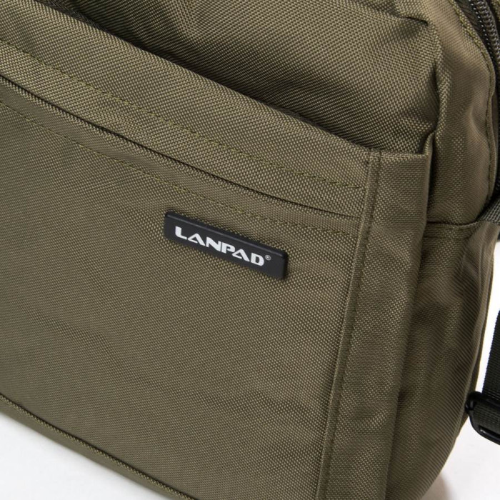 Сумка чоловіча Lanpad. Два відділення, що закриваються на блискавку. Усередині відділень є кишеня на блискавці та відкрита кишеня. На фасаді розташовані дві кишені, а зовні сумки на звороті одна кишеня на блискавці. Регульований плечовий ремінь шириною 4см.