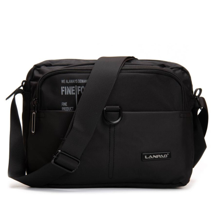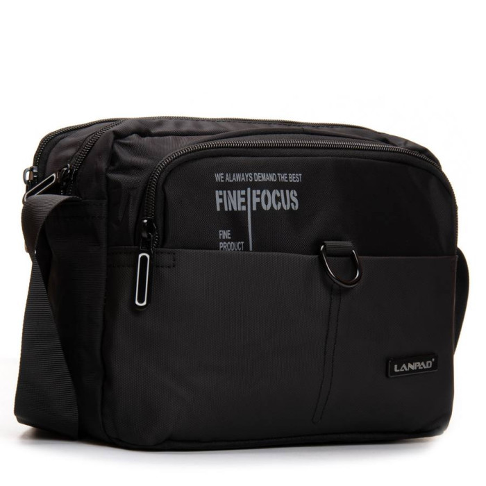 Чоловіча велика горизонтальна сумка крос-боді Lanpad. Два відділення, що закриваються на блискавку. Усередині одного відділення є кишеня на блискавці. На фасаді та на звороті розташовані місткі кишені на блискавці. На фасаді також знаходиться широка кишеня на застібці-липучці