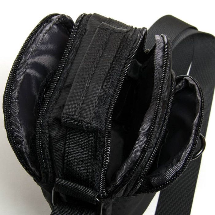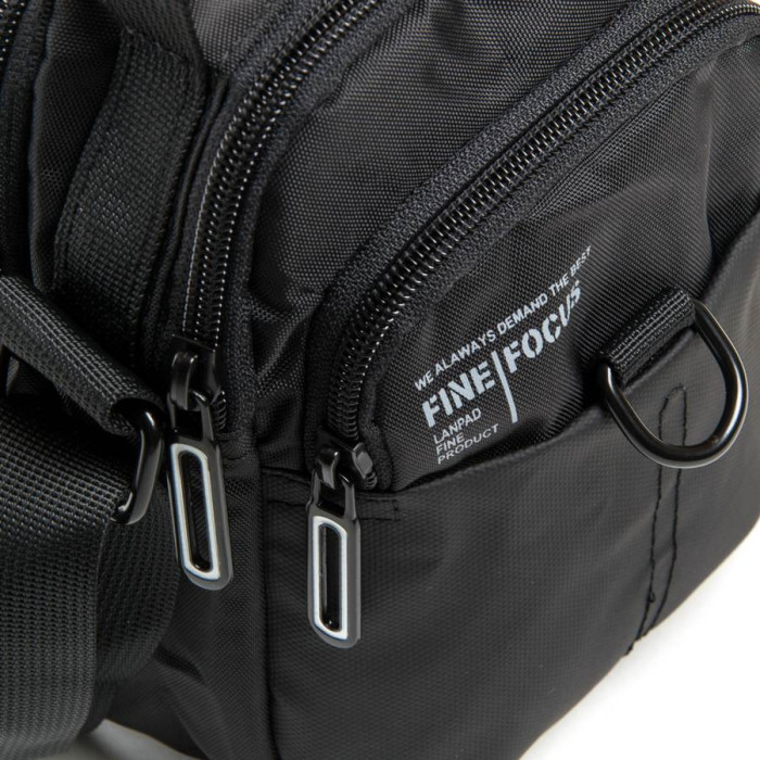 Чоловіча сумка Lanpad. Два відділення, закриваються на блискавку. Усередині відділення розташована кишеня на блискавці. На фасаді розташована кишеня на блискавки і кишеню на липучці. У комплекті регульований плечовий ремінь. Розмір (см.) 18 * 14 * 7