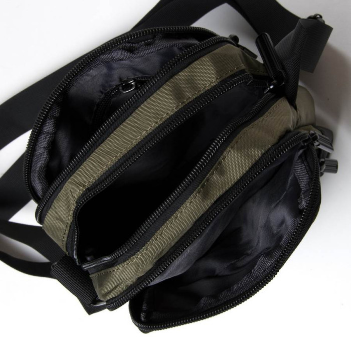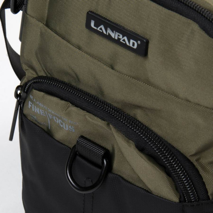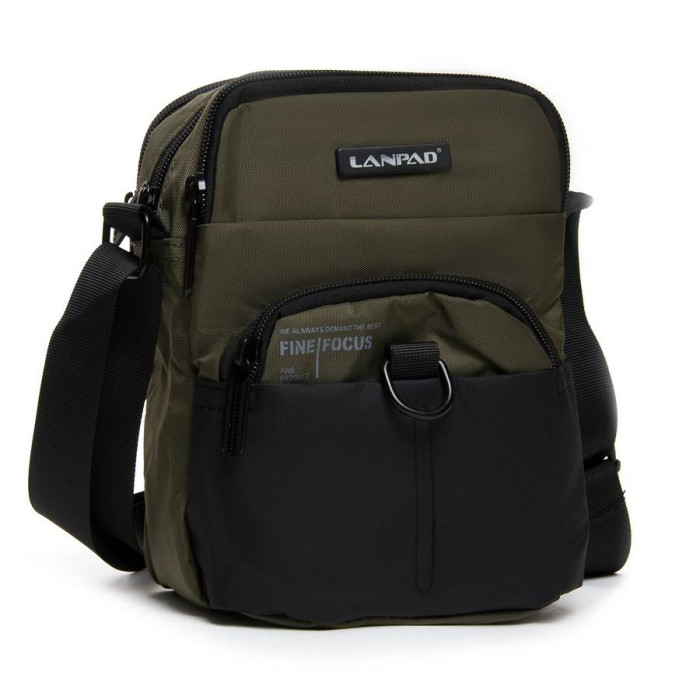 Сумка чоловіча Lanpad. Три відділення, що закриваються на блискавку. Усередині відділення розташована кишеня на блискавці. На фасаді знаходиться кишеня на блискавці та кишеня на липучці. На звороті є кишеня на блискавці. Регульований плечовий ремінь.