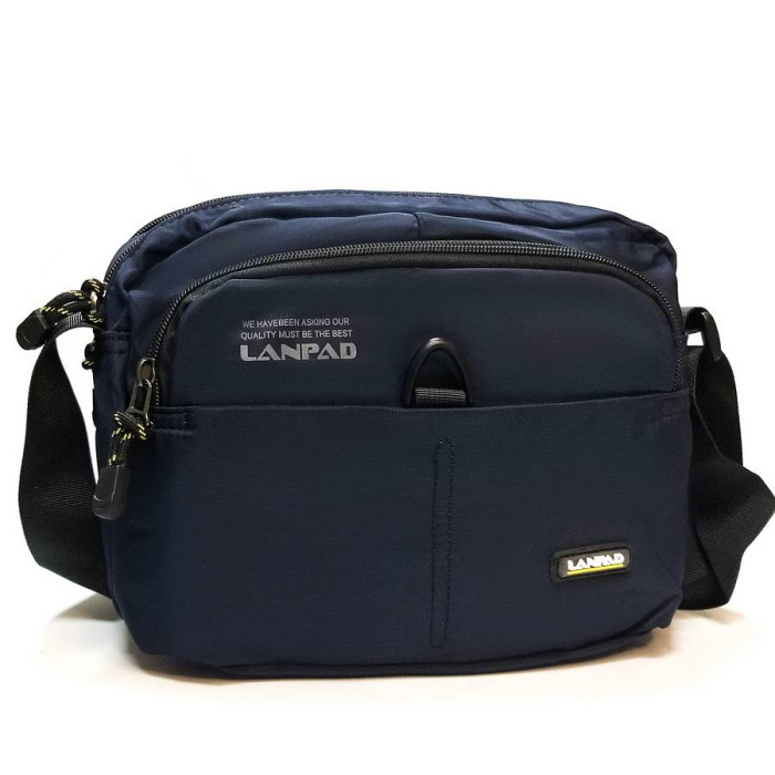 Чоловіча горизонтальна сумка планшет Lanpad. Два відділення, що закриваються на блискавку. Усередині відділення є кишеня на блискавці та відкрита кишеня. На фасаді знаходиться велика кишеня на блискавці та кишеня на застібці-липучці. На звороті є одна кишеня на блискавці. Регульований плечовий ремінь шириною 4см.
