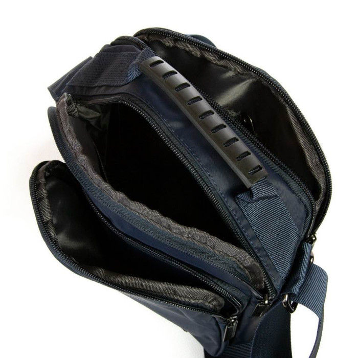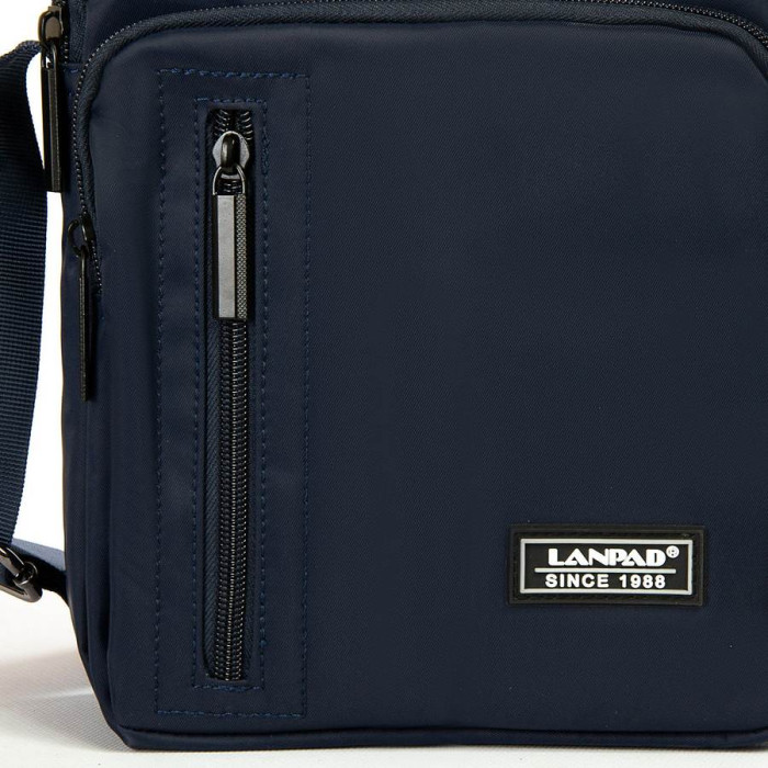 Сумка чоловіча Lanpad. Два відділення, що закриваються на блискавку. Усередині відділень є кишеня на блискавці та відкрита кишеня. На фасаді розташовані дві кишені на блискавці, а на звороті одна кишеня. Регульований плечовий ремінь шириною 4см.